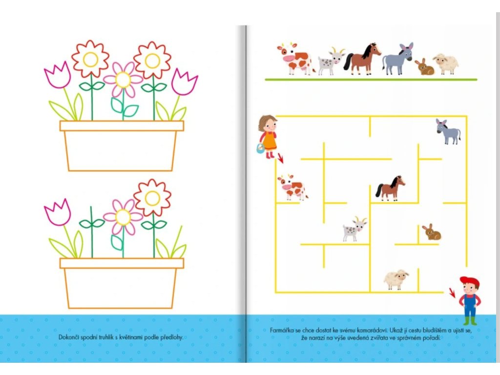 Díky pestrému výběru aktivit si vaše dítě rozvíjí základní dovednosti, jako je počítání, vybarvování, kreslení, logické uvažování, jemná motorika a mnoho dalšího. Děti budou řešit sudoku, budou hledat rozdíly, dokončovat obrázky, hledat cestu bludištěm či počítat obrázky.