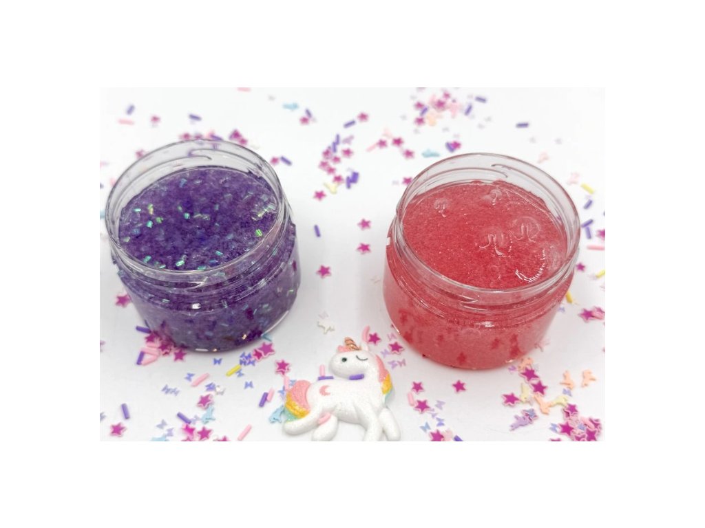 Tak ten je!! Teda ty jsou! V balení dostanete dva gelové slizáčky - jeden fialový plný korálků, čímž vzniká úplně nová textura, a druhý třpytivý krásně růžový (na foto reálné barvy nejdou zachytit). Dítě tak má ke hraní 200 g slizu, které může ale nemusí smíchat. Smícháním vznikne unikátní jiná barva. A navíc! Součástí balení je pytlíček s konfetami, které děti mohou do slizáčku zapracovat, a také krásný velký jednorožec, se kterým si mohou hrát.