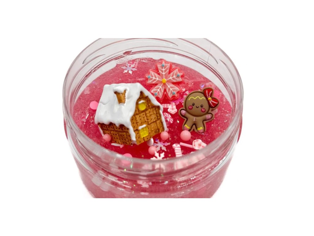 150g gumového slizu, konfety, třpytky, chaloupka, perníková holčička, vločka