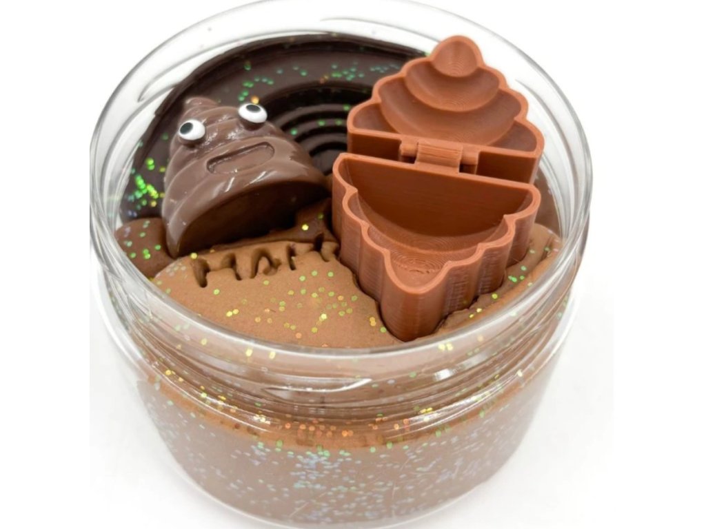 250g voňavé a měkkoučké domácí modelíny ve třech odstínech hnědé, třpytky, konfety, figurka hovínka, eco PLA hovínkovač