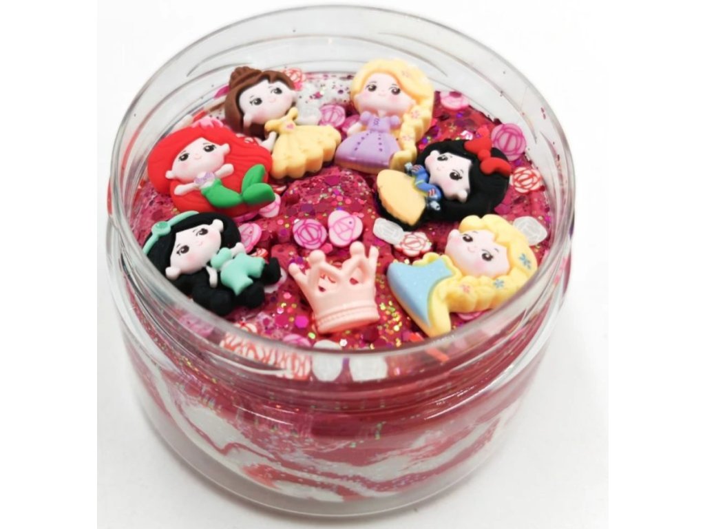 250g úžasné měkkoučké domácí modelíny mixované ze tří barev. Třpytí se díky dvěma druhům třpytek, konfety, 6ks dekorací princezen, korunka.