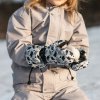 Tento pár zimních palčáků je podšitý měkkým a příjemným fleecem a materiálem Thinsulate, který udrží malé ruce v teple a pohodlí v chladných dnech. Kromě toho jsou tyto palčáky navrženy z nepromokavého materiálu s voděodolnou vnitřní membránou, takže jsou plně voděodolné. Tyto palčáky se ve spodní části široce rozevírají, aby se snadno přizpůsobily rukávům bundy, a poté se zapínají. Kromě toho mají kolem zápěstí druhý zip pro bezpečnější upevnění na ruce. Texturovaný, odolný materiál na dlani a palci těchto rukavic zajišťuje lepší schopnost uchopení.