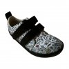 Typ nohy: normální/nízký nárt, široká prstová část, dominantní palec, úzká pata
