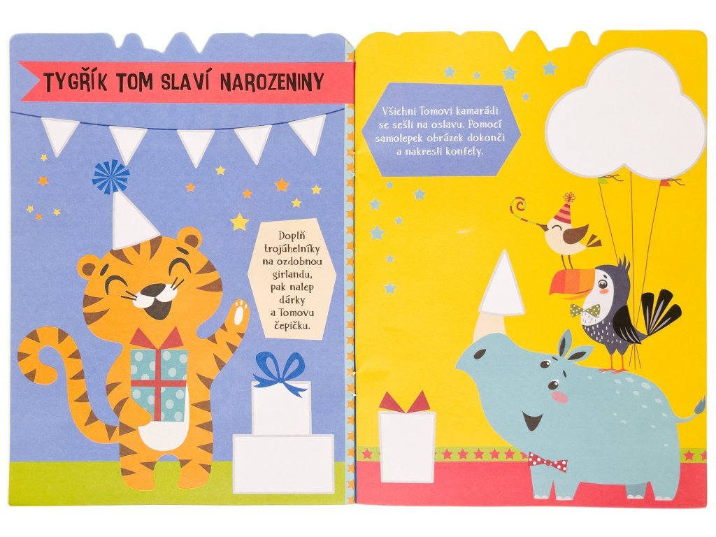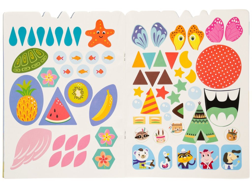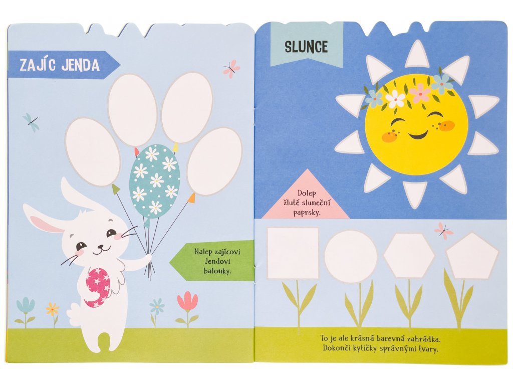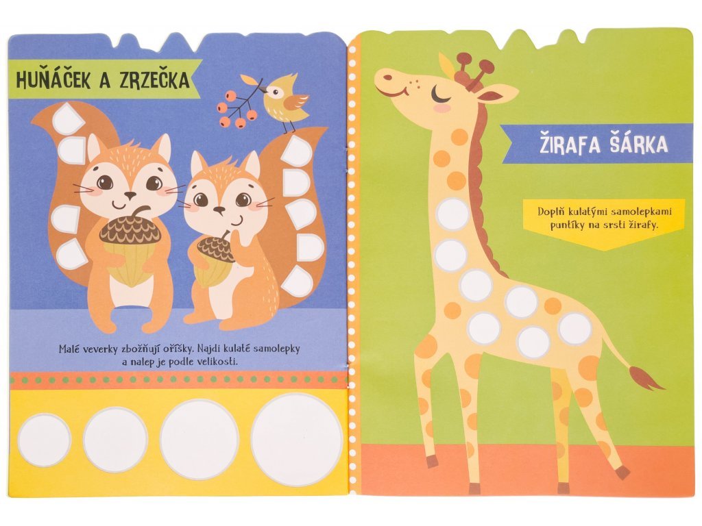 Budete s dítětem dolepovat různé tvary, poznávat, kam samolepky patří, podle barev a kreativně dozdobíte obrázky.