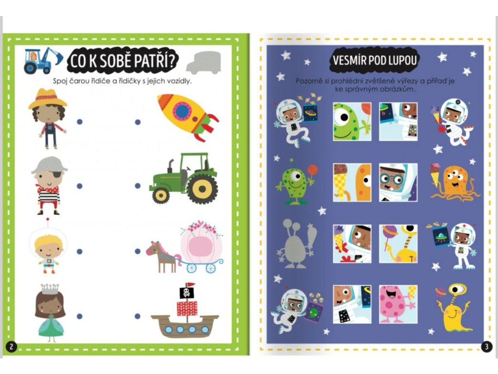 Tato kniha s úlohami na přiřazování, které zaujmou chytré hlavičky, podporuje tvořivé hraní i fantazii s vytlačovacími obrázky a více než 250 samolepkami.
