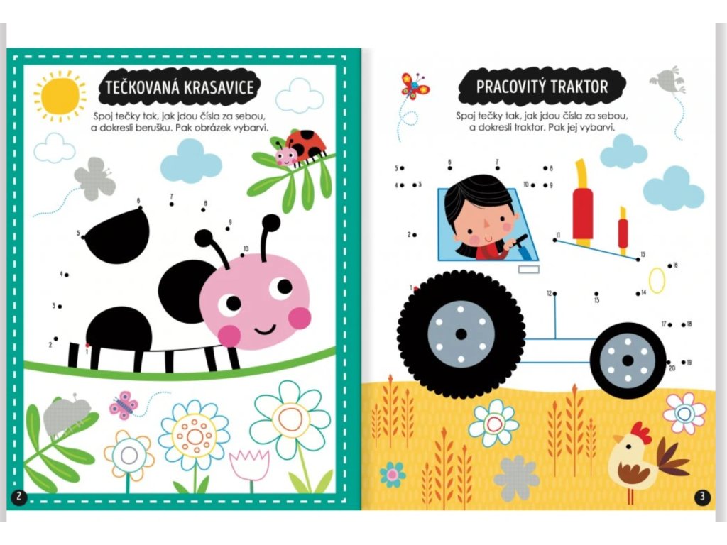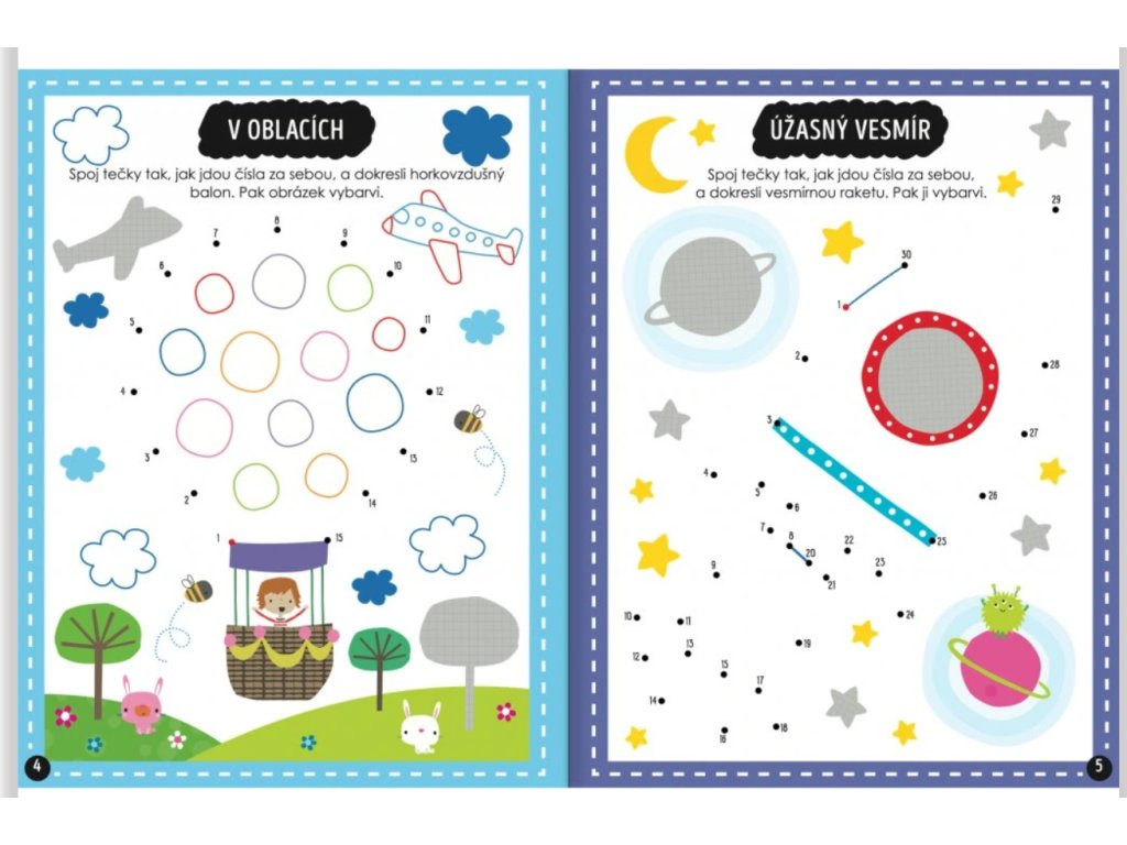 S tužkou a pastelkami navštíví zvířata v lese a na louce, vydají se na výlet balonem i raketou, postaví úžasný hrad z písku, oslaví s jednorožci narozeniny a ještě spoustu dalšího! Úkoly vhodně uzpůsobené věku dítěte napomáhají s koordinací oka a ruky, rozvíjí logické myšlení a podporují tvořivé hraní.